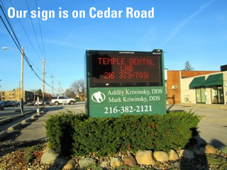 We are located at the corner of Cedar Rd and Green Rd. in South Euclid (14443 Cedar Rd. South Euclid, OH 44121) The driveway to enter our office is off Green Rd. Please park in the front of our office.